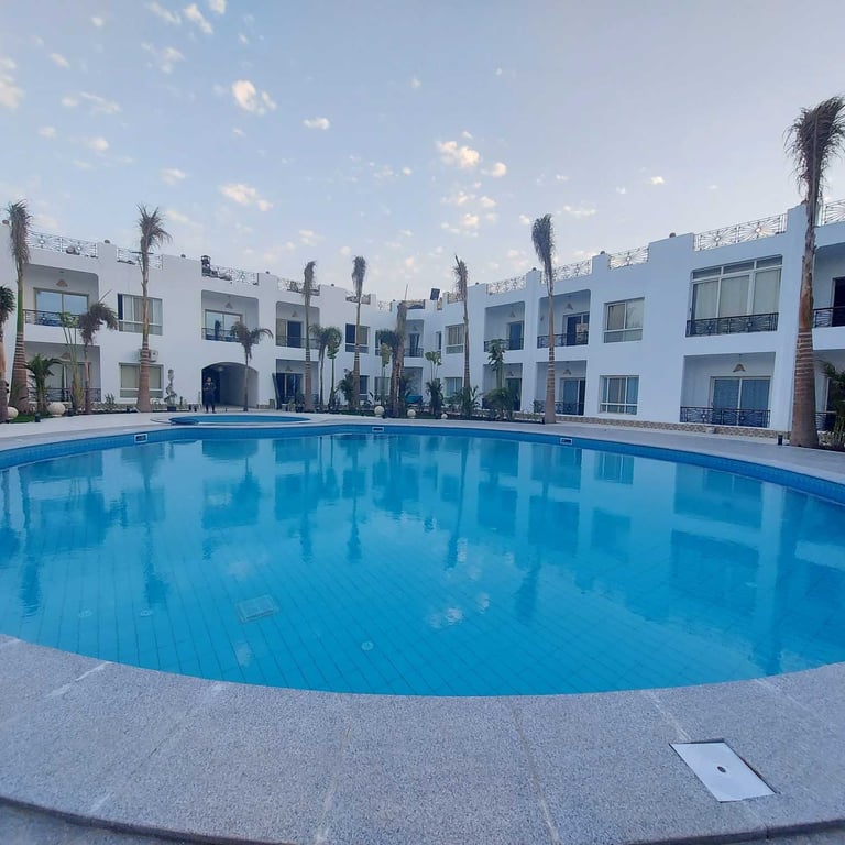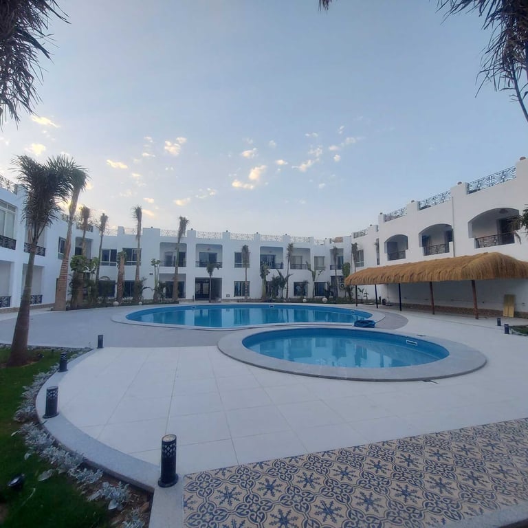 Located in the heart of Sharm El Sheikh just in front of Naama Bay, the Roza Mall compound, just fully renovated 6 months ago, develops on a small area with a main central swimming pool and several shops and restaurants in the front. The central location and walking distance to the beach are one of the main features of this complex which is a good investment for living and for renting out. The sandy beaches of Naama Bay are just a short walk from this residence with an entrance fees of few euros.